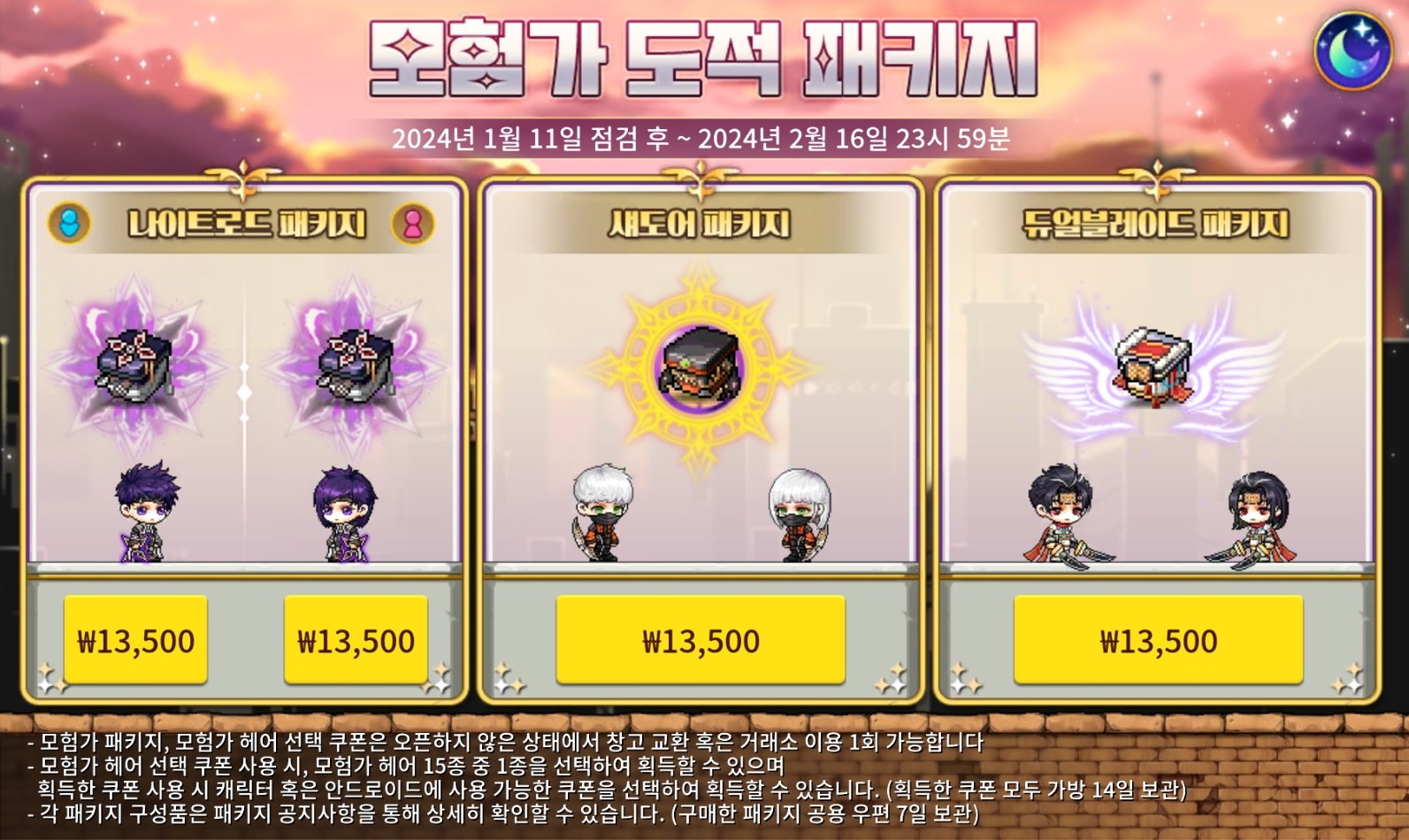 [공지글 바로가기] [판매상품] 모험가 패키지 판매 안내 (1/11 ~ 2/16)