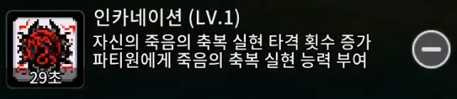 인카네이션 (자신의 죽음의 축복 실현 타격횟수 증가및 파티원에게 죽음의 축복 실현 버프부여)