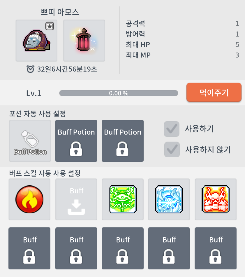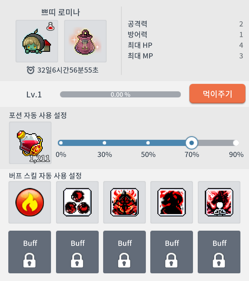 [메이플M] 카인(5차기준) 펫꼽 (By.콩단현상) (HP 70% / MP 30% 설정)