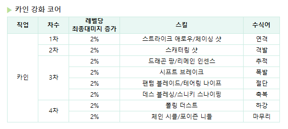 🏹 카인 강화코어 (레벨당 최종대미지 2% 증가)