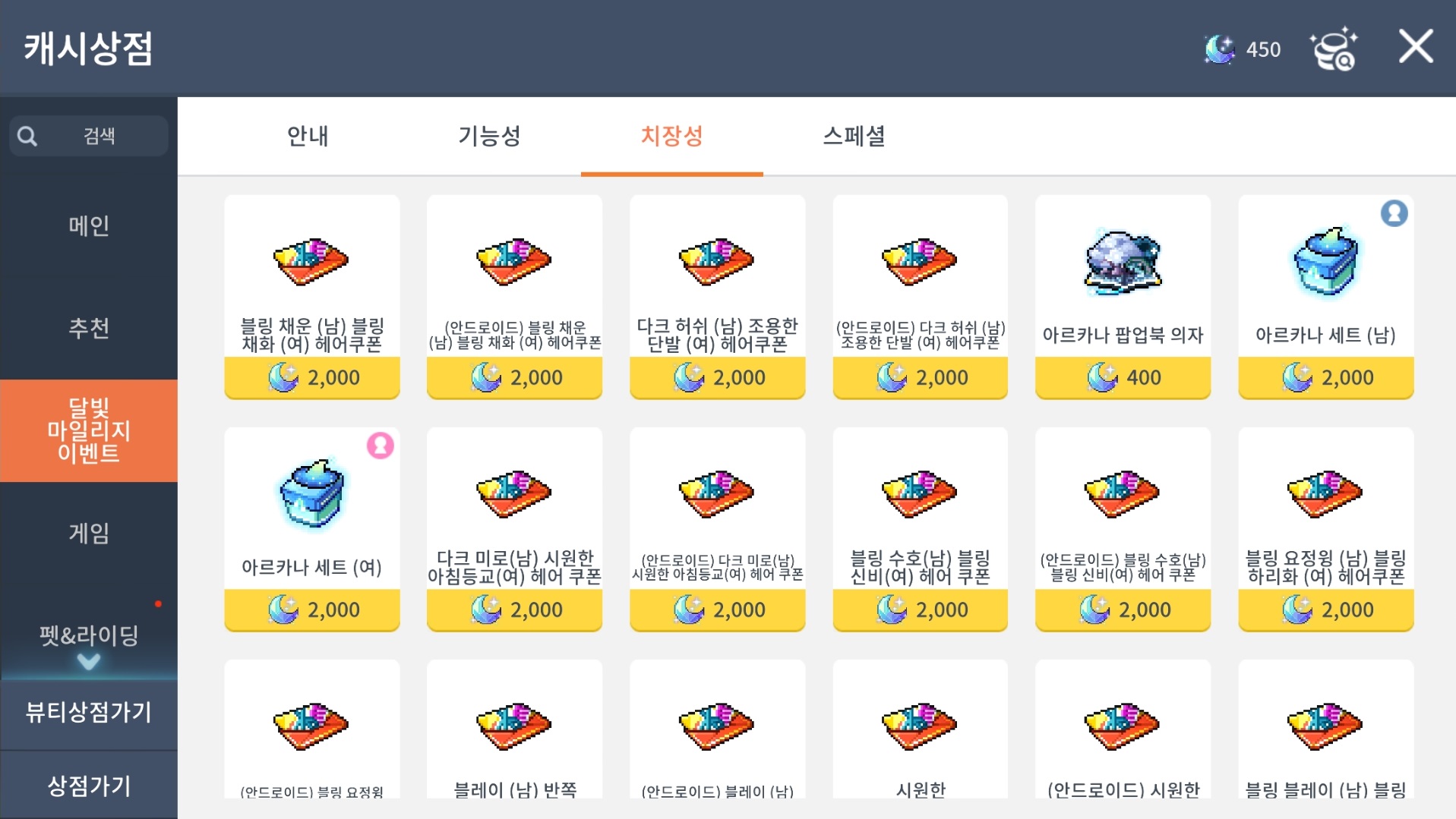 (안드로이드) 블링 수호(남) / 블링신비(여) 헤어쿠폰 : 매물없음