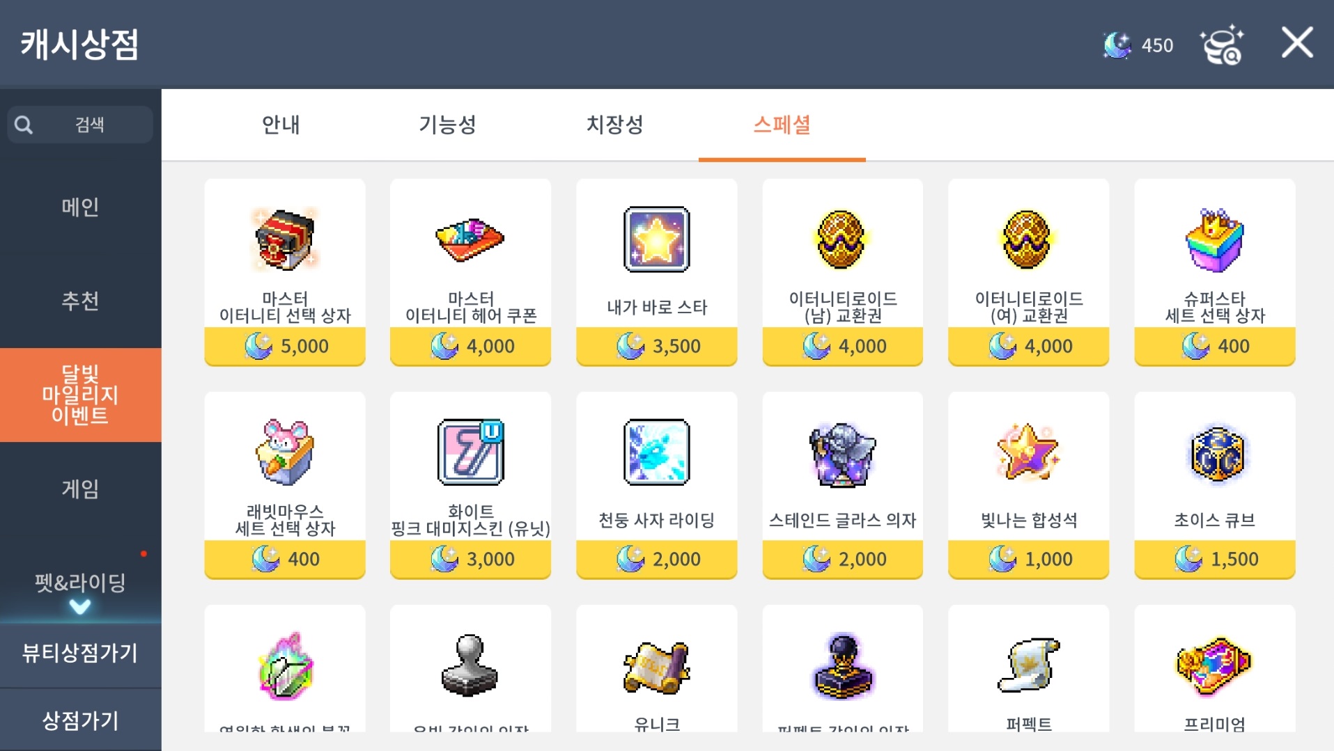 <스페셜> 상점 (스페셜부터는 최소 10~75만원 상당의 아이템들)