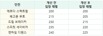- 아케인 리버 던전의 입장 레벨이 완화되었습니다.
