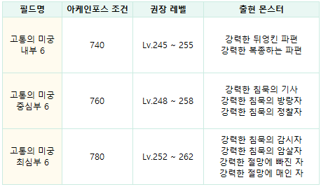 - 고통의 미궁에 신규 아케인포스 필드 3종이 추가되었습니다.