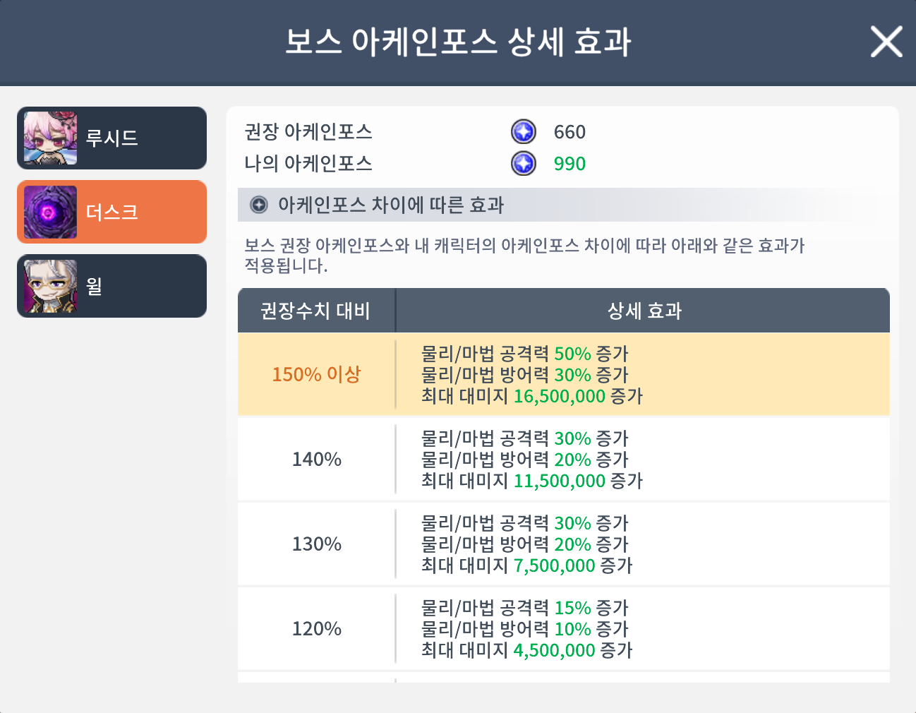 [군단장 루시드 & 더스크] 아케인포스 상세 효과 [◈아케인포스 660 이상] [660 730 800 860 930 990]