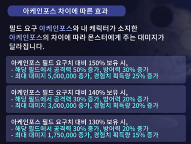 아케인포스 필드에서 요구치 대비 150% 보유시 (40차이)