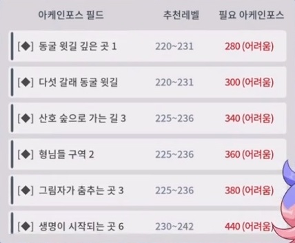 아르카나 (입장레벨 : 220) (업데이트 : 2023.02.14) (수정일 : 2024.03.07)