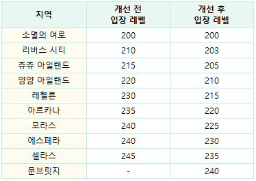 - 일부 레벨 구간의 레벨업 필요 경험치가 감소됩니다.