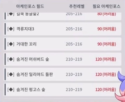 [◈120] 숨겨진 펑고스 숲 (추천레벨 213~219) (레벨업 위주) (몬스터 : 강력한 쿰파이더 / 강력한 다람뇽 Lv.219)