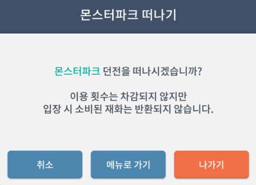 마지막으로 몬스터파크 퇴장기능은