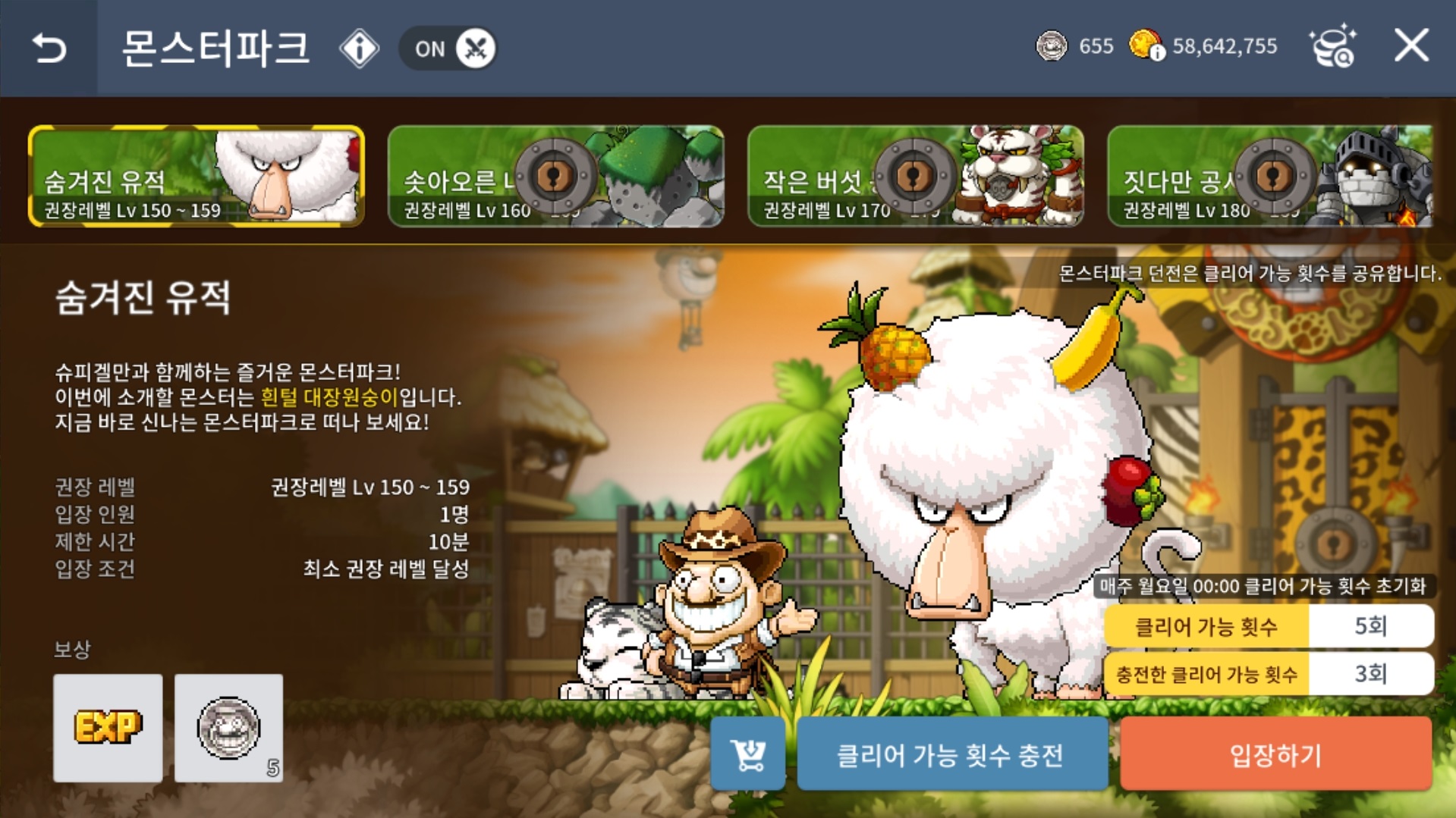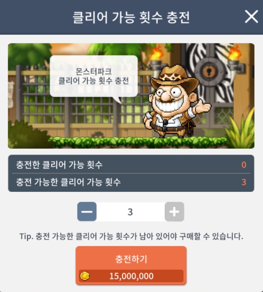 몬스터파크는 매주 월요일 자정 초기화입니다