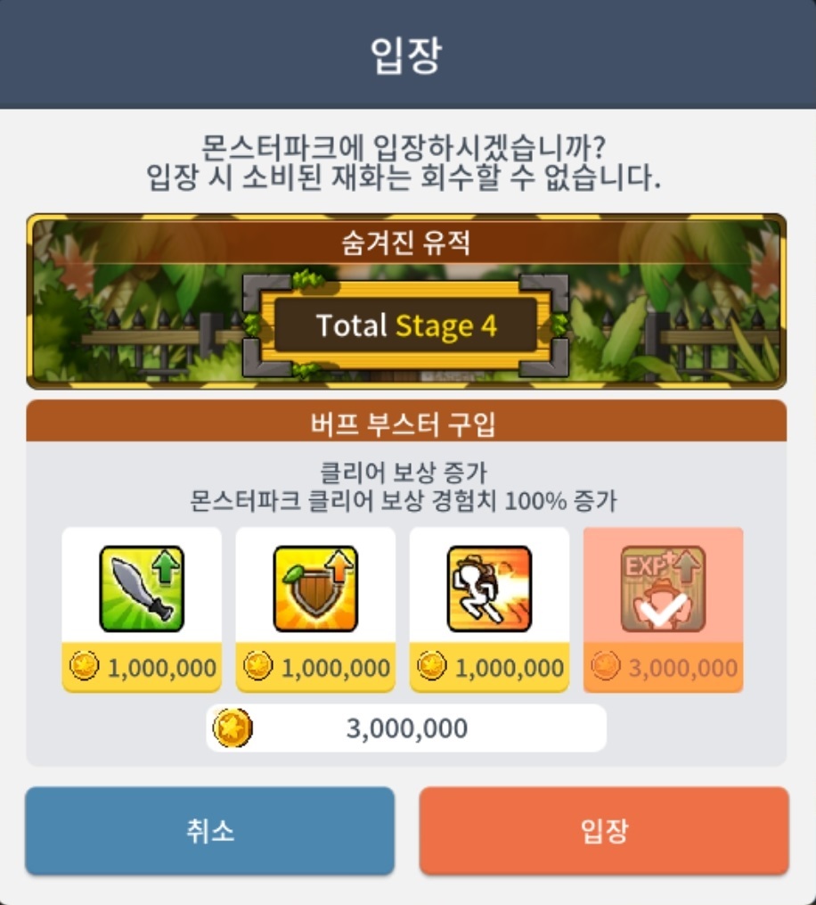 클리어 보상 증가(클리어 경험치 50% 증가) (3,000,000)
