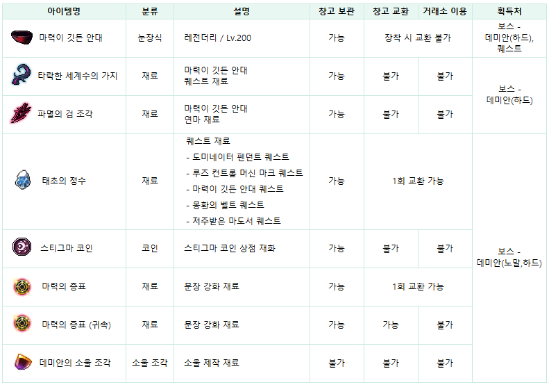 - 데미안 싱글 모드 보상은 기존 각 난이도의 멀티 모드 보상과 동일하게 제공됩니다.