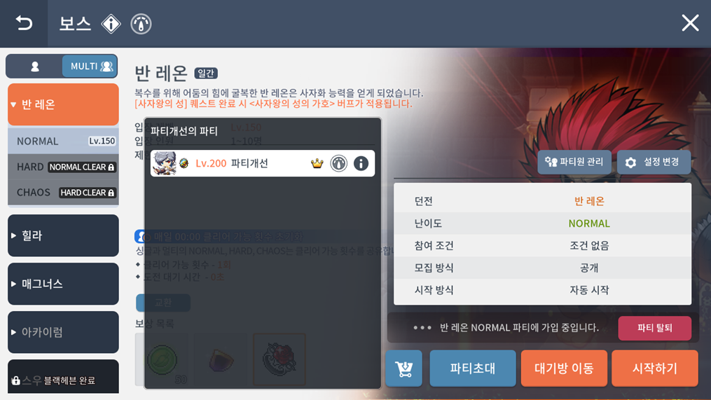 - [빠른 콘텐츠]>[보스] 탭을 통해 참여할 수 있습니다.