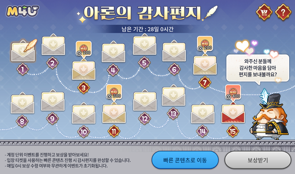 안녕하세요~ 언제나 설렘 가득한 메이플 월드로 용사님을 초대하는 GM후니가 찾아왔습니다. 5/2(목) 메이플스토리M 패치 내용을 안내해드립니다. 자세한 내용은 아래에서 확인해 주세요. [패치 개