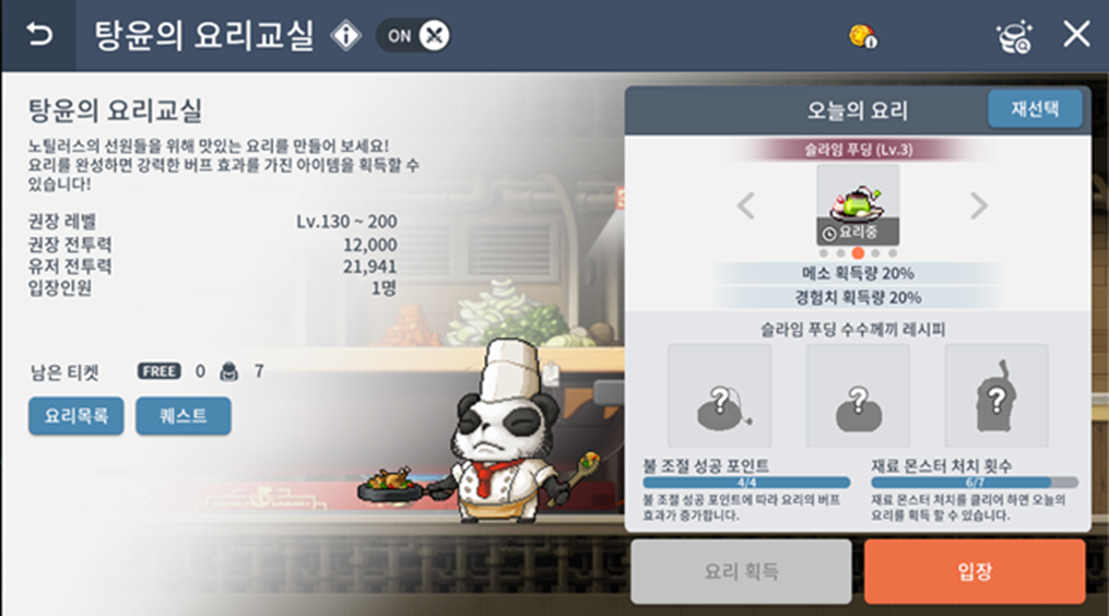 - '탕윤의 요리교실' - '주간 퀘스트' 페이지 입장 후, 비활성화된 받기 버튼을 누르면 어색한 안내 메시지가 노출되는 현상 수정