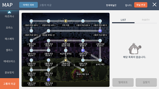 - 고통의 미궁 지역은 Lv.245부터 확인할 수 있습니다.