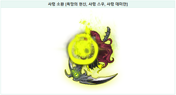 - 일정한 주기마다 욕망의 현신, 사령 스우, 사령 데미안을 소환합니다