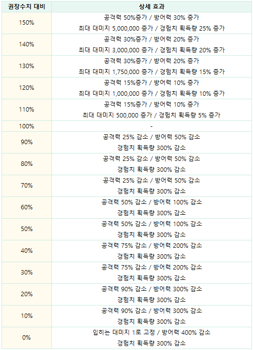 - 던전 내 캐릭터 경험치 획득량