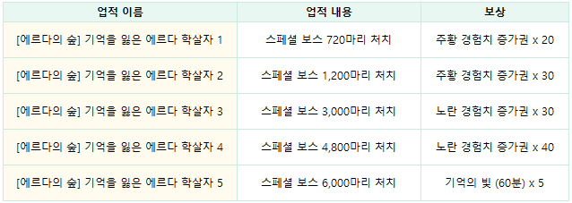 - 에르다의 숲 관련 업적도 함께 추가되었습니다.
