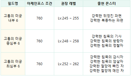 - 고통의 미궁에 신규 아케인포스 필드 3종이 추가되었습니다.