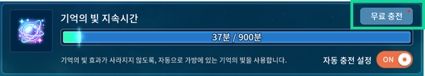 - 기억의 빛 아이템은 최대 900분까지 충전이 가능합니다.