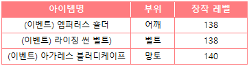 * 방어구 지원 상자에서 획득하는 장비는 모두 MAX 강화 상태로 지급되며,