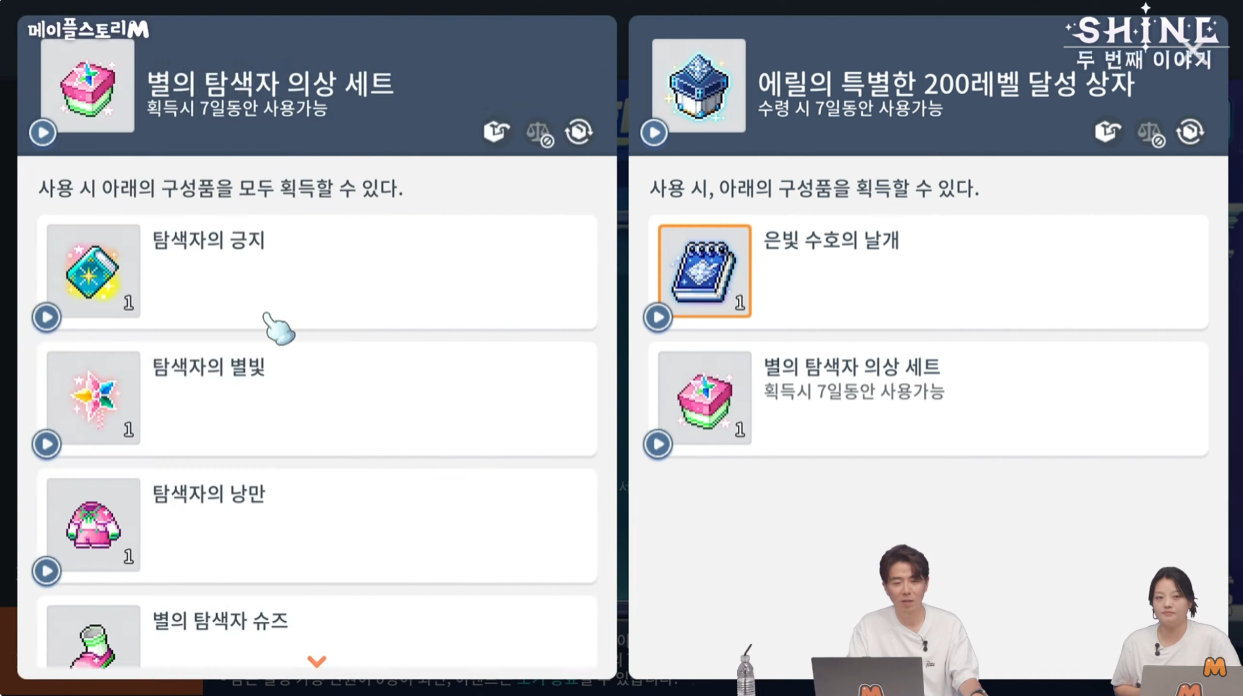 -에릴과 특별한 200레벨 달성 이벤트 (예시 : 스카니아 최초 100명이내로 에릴 200달성하기) (보상 : 은빛 수호의 날개-칭호 효과는 예티X핑크빈과 동일 / 별의 탐색자 의상 세트-한정판)