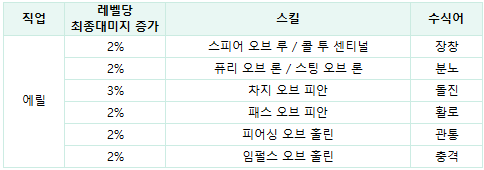 이에 전사 직업군의 최대 HP 옵션 총합인 20%와 동일한 수치로 조정하기 위해 어드밴스드 블레싱의 최대 HP 옵션을 삭제하는 대신 최종 대미지 옵션을 높은 수준만큼 신규 옵션으로 부여하는 방향으로 개편을 진행했습니다.