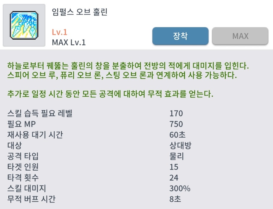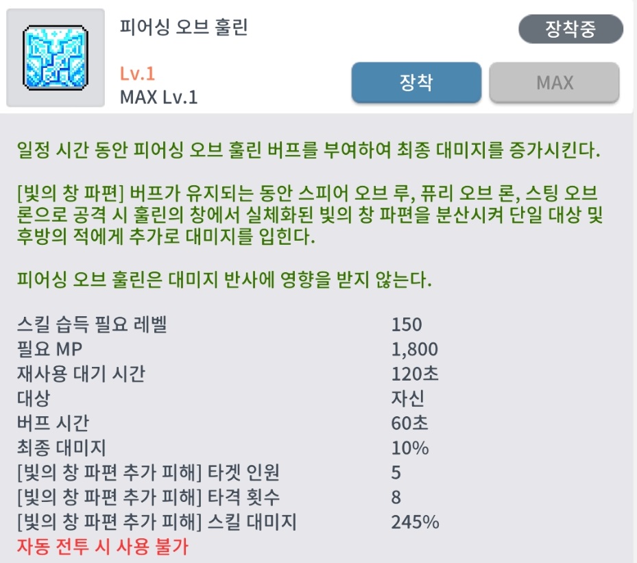 🔱에릴 라이트 150하이퍼스킬 - 피어싱 오브 훌린(버프)