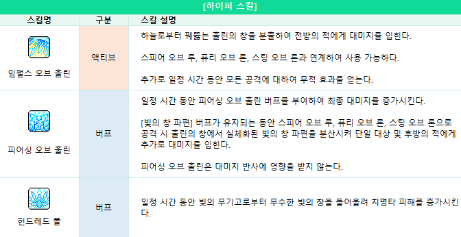 스킬설명 : 일정시간 동안 빛의 무기고로부터