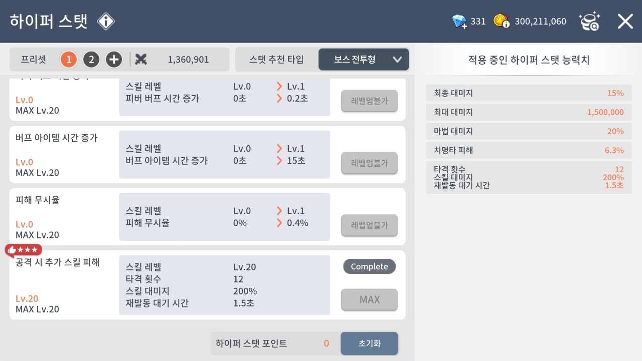 (200달성후 경증,파경은 초기화하셔도 됩니다 - 사냥용 하이퍼스탯으로 찍을시 그냥 놔두시면 됩니다)
