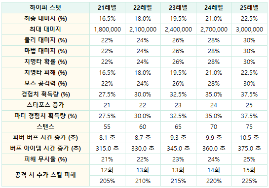 (2024.04.04 패치후 하이퍼스탯 21~25레벨 확장)