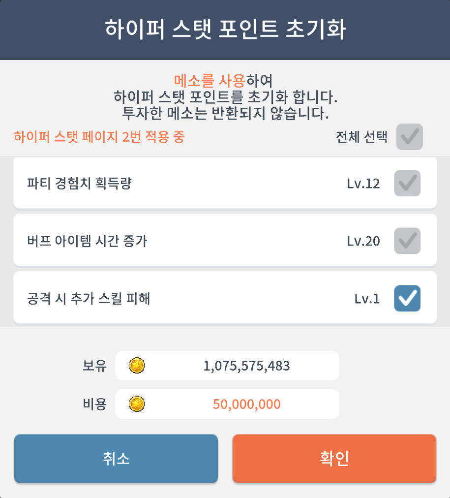 16. 하이퍼 스탯 초기화 비용 변경