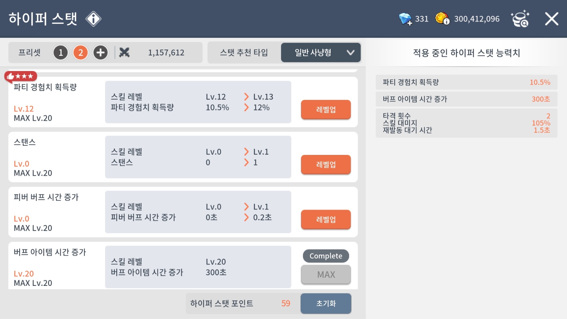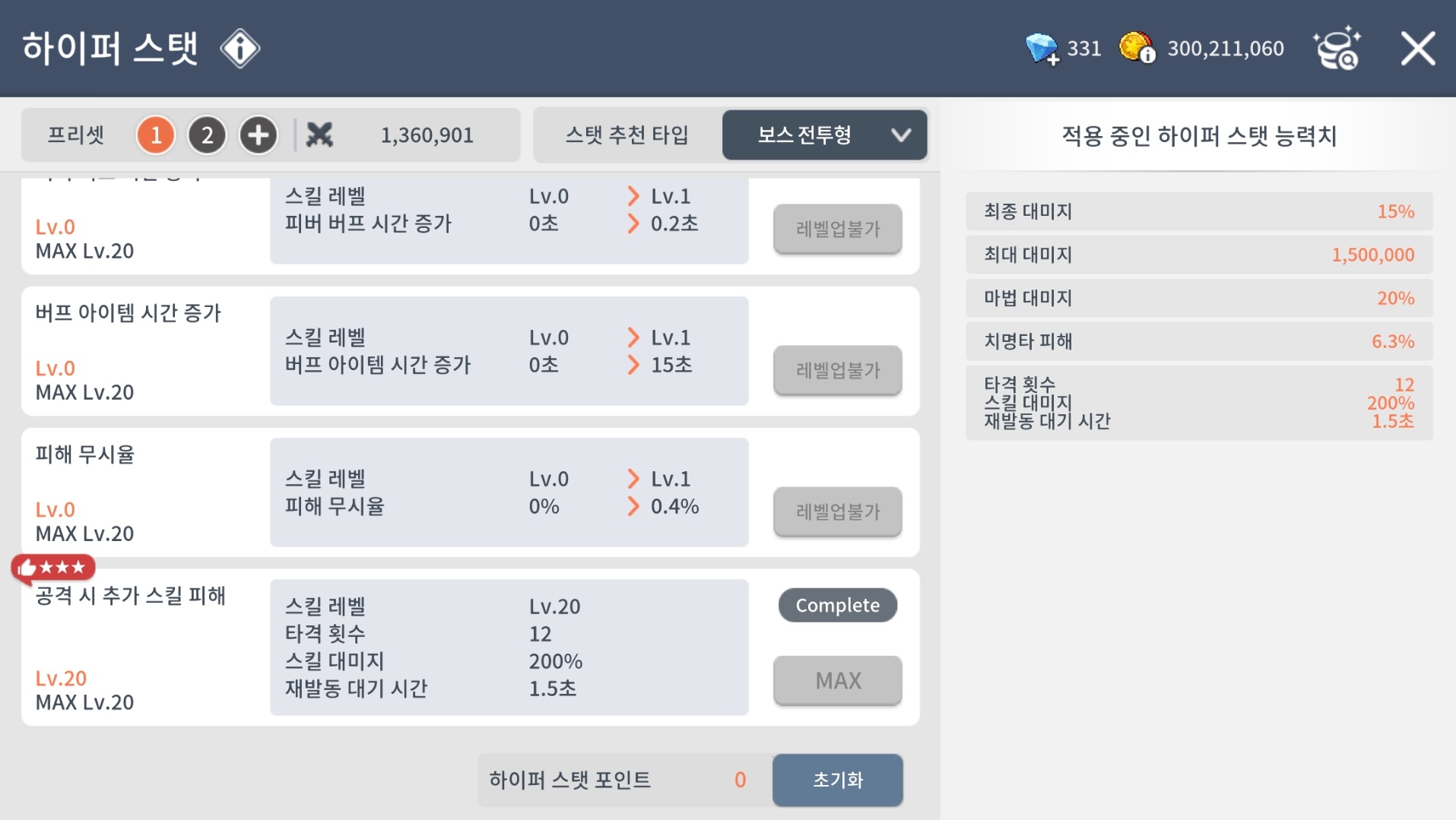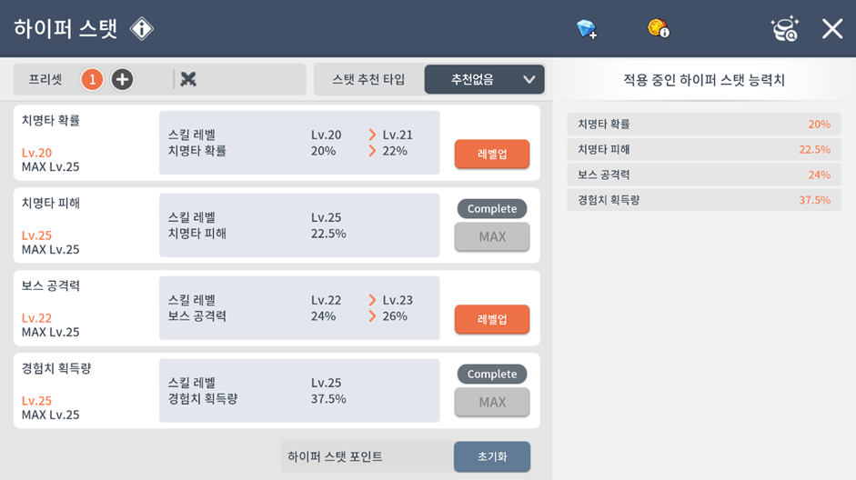 (2023.04.13 패치후 하이퍼스탯 프리셋 추가) (사냥/보스)