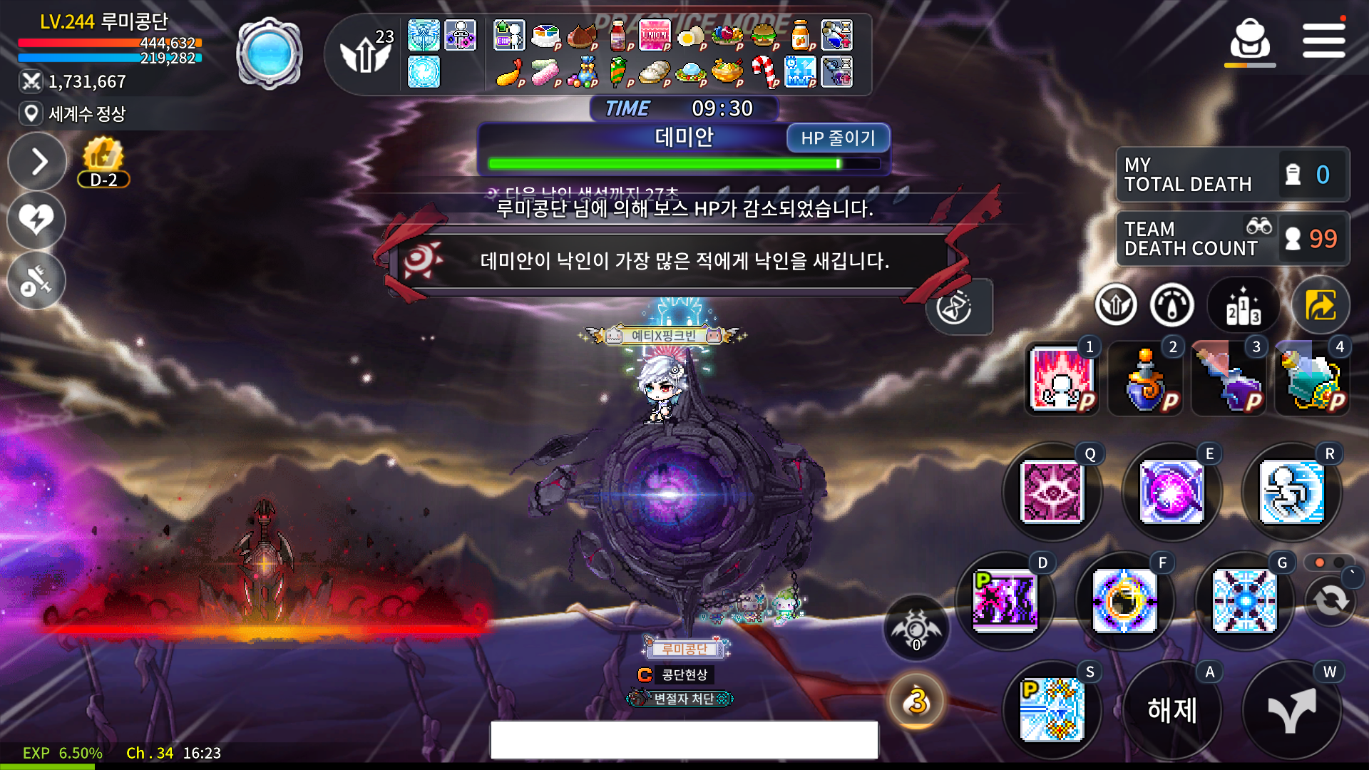 현재 보스 체력이 1이거나 일부 보스 (데미안/윌) 페이즈에서는 다음 페이즈가 되기전까지 보스 HP 감소 불가능