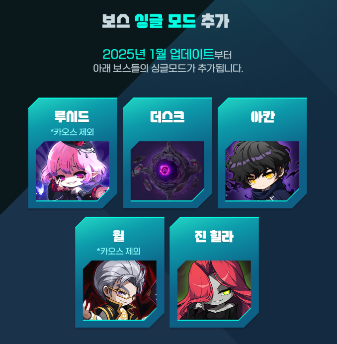 -(갓패치) 보스 싱글모드 추가 (2025년 1월 패치후) (루시드-카오스제외 / 더스크 / 아칸 / 윌-카오스제외 / 진힐라)