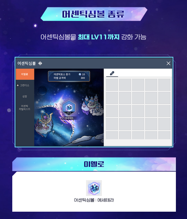 -이엘로 어센틱심볼 : 에세테라 (어센틱포스 증가 / 물리&마법공격력 300~ 증가)