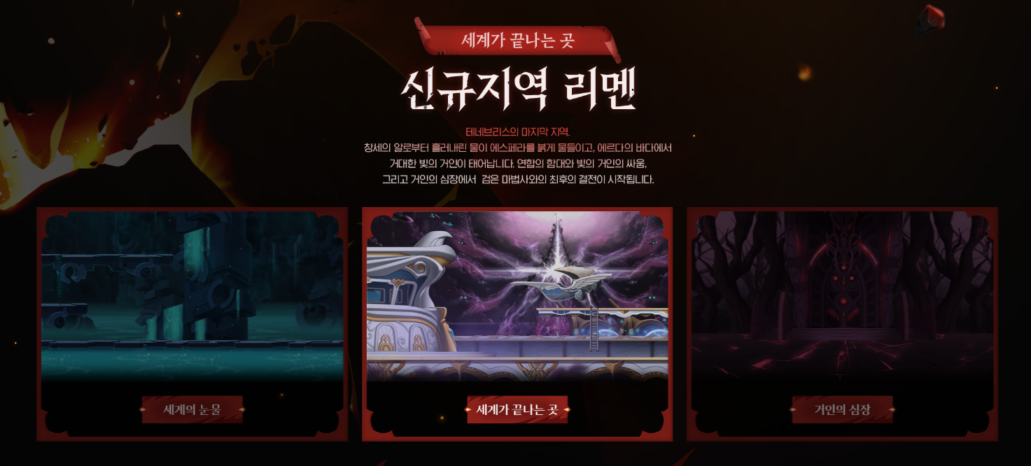 *신규 지역 - 테네브리스 리멘 (세계의 눈물 / 세계가 끝나는 곳 / 거인의 심장)