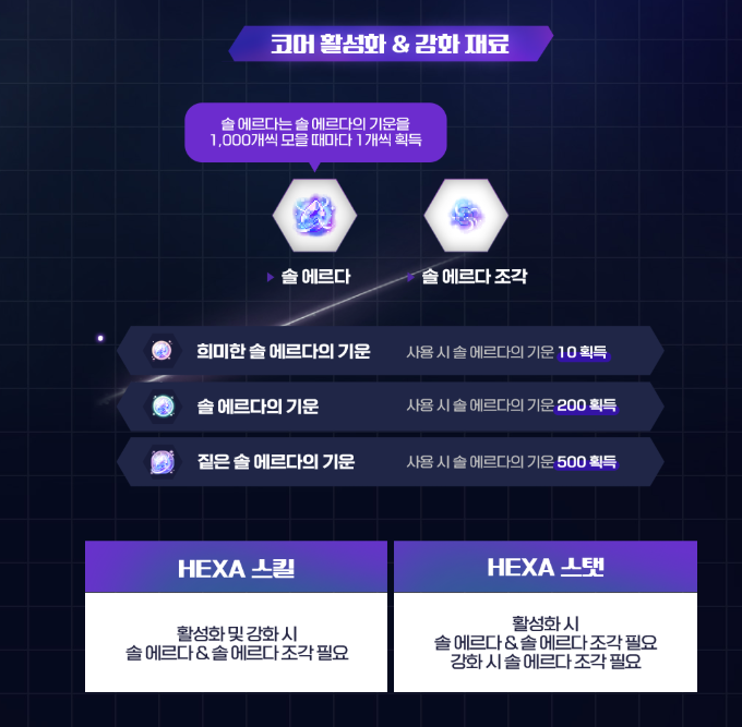 -HEXA 스탯 (활성화 시 '솔 에르다 & 솔 에르다의 조각' 필요 / 강화시 '솔 에르다 조각' 필요)