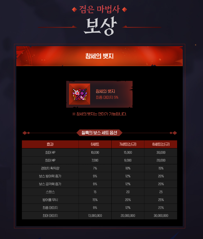*신규 보스 - 검은 마법사 보상