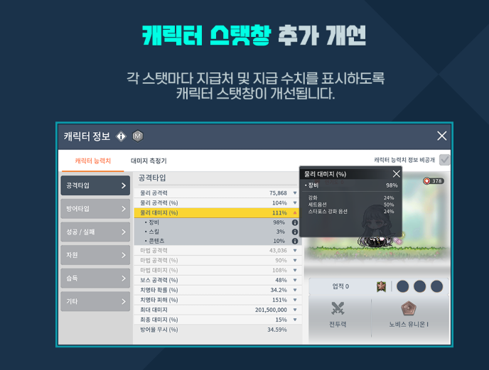 -(갓패치) 캐릭터 스탯창 추가 개선 (각 스탯마다 지급처및 지급 수치를 표시하도록 개선)