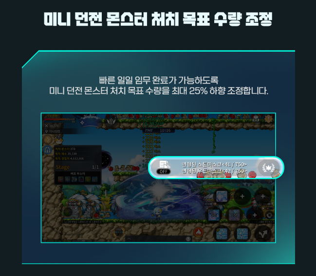 -(갓패치) 미니던전 몬스터 처치 목표 수량조정 (최대 25% 하향 조정) (999마리 → 750마리)
