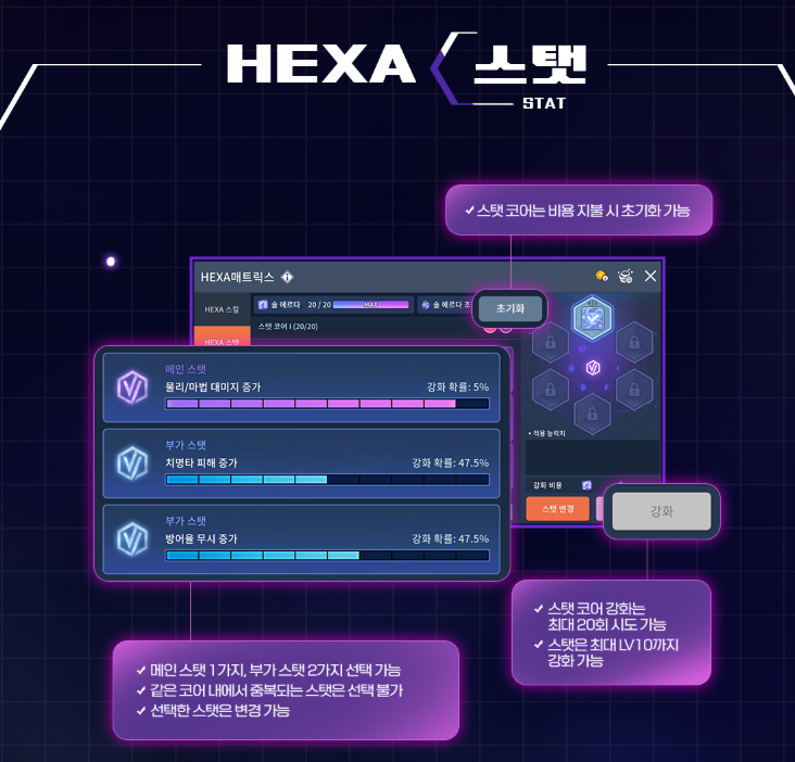 *HEXA 스탯 (스탯 코어는 비용 지불시 초기화 가능)