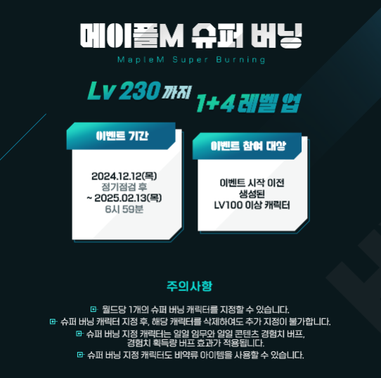 (12/12) 하이퍼 버닝M (메M 최초 Lv.230까지 1+4 레벨업) & 개선 사항 업데이트