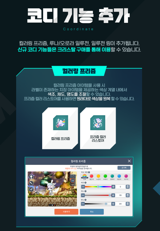 -코디 기능 추가 (컬러링 프리즘 / 프리즘 컬러 리스토어 / 일루전링 / 루나&오로라 일루전)