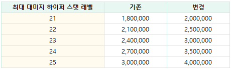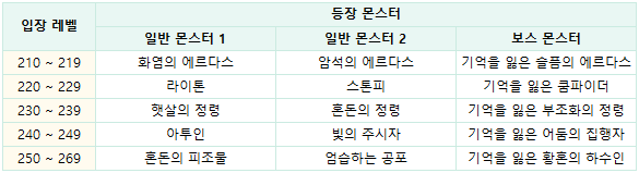 - 각 스테이지별 아케인포스 요구 수치 밸런스가 다음과 같이 변경됩니다. (아케인포스 차이에 따른 효과는 변경되지 않습니다)
