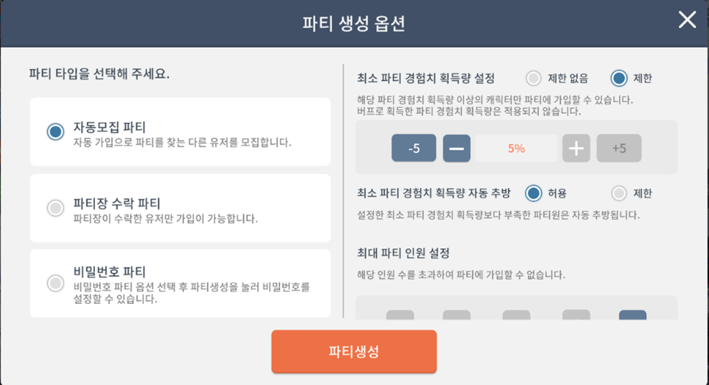 ▶ 파티 생성 옵션 개선