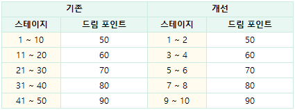 - 드림 포인트 획득 규칙이 다음과 같이 변경됩니다.