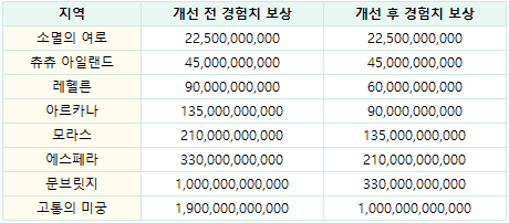 - 지역별 아케인포스 요구치는 다음과 같이 변경됩니다.